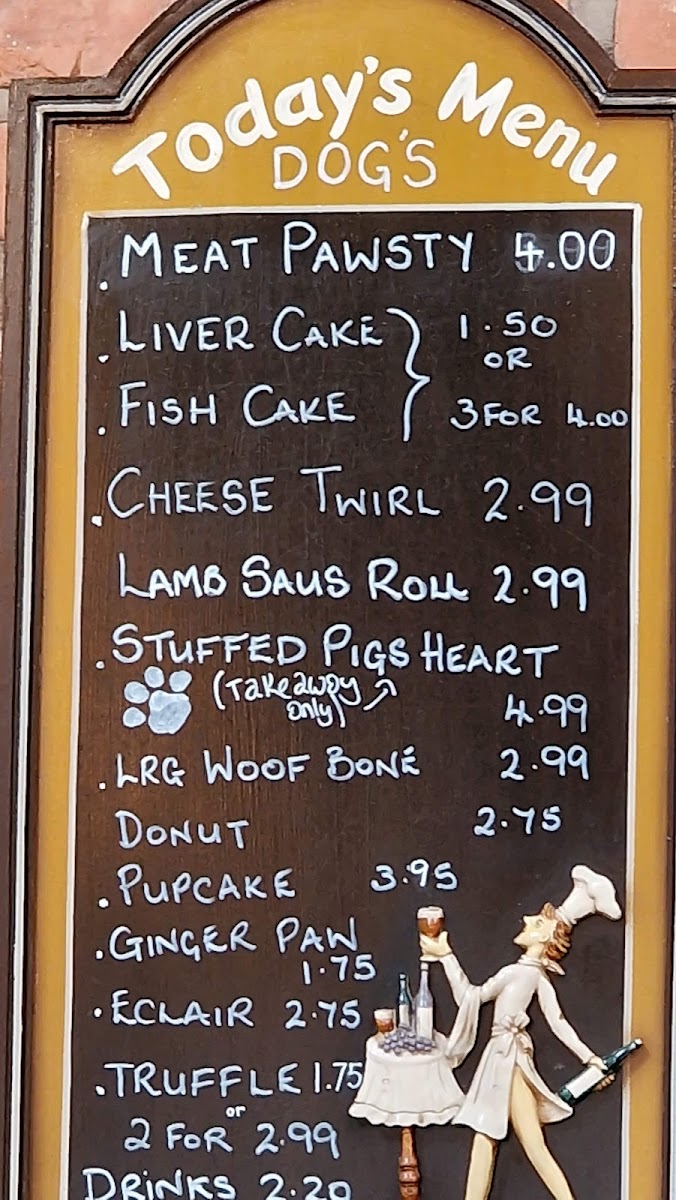 Food offerings include sandwiches and paninis, with highlights like the chicken sandwich and tuna panini. The menu also presents several baked goods and sweet treats, including jam and cream scones and Nutella pancakes. Light savory options such as meat pasty, liver cake, truffle items, and dog sausages are featured as well.